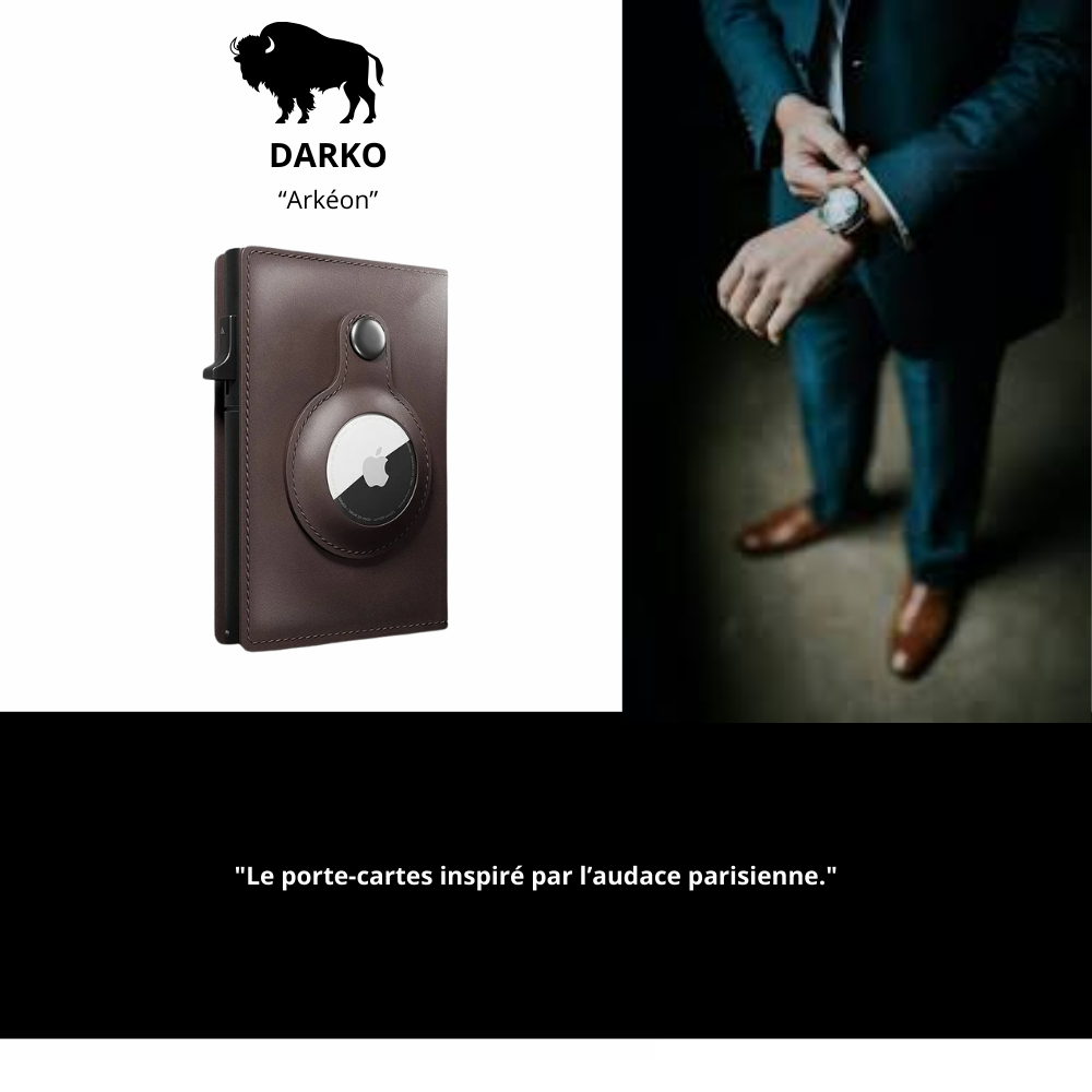 Découvrez Darko Arkéon, le porte-cartes haut de gamme qui allie sophistication, technologie avec son Air Tag intégré, fonctionnalité et style intemporel. Conçu pour les esprits exigeants, il incarne le luxe et le raffinement dans chaque détail. Sublimez votre quotidien avec un accessoire unique, pensé pour ceux qui apprécient l'excellence.