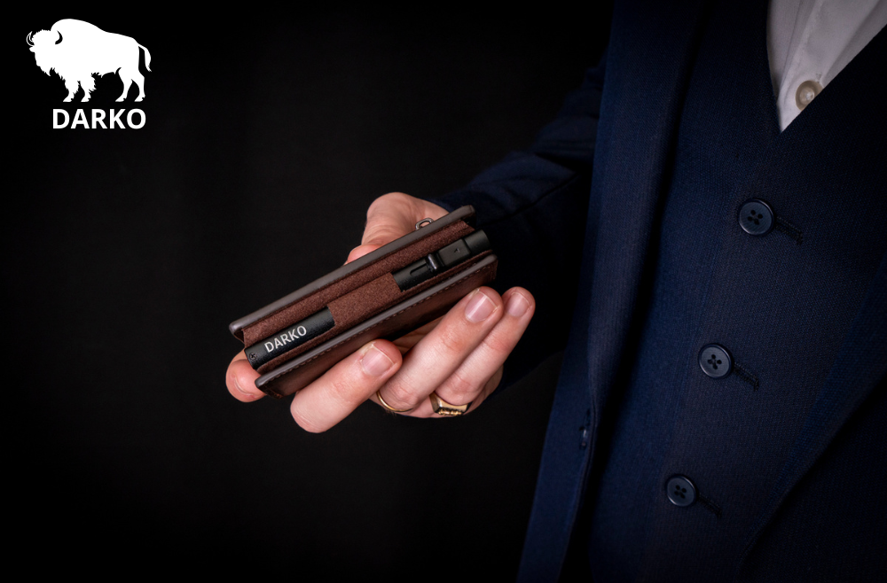 Le portefeuille Darko est fabriqué à partir de matériaux de haute qualité, y compris l'aluminium, le cuir végan premium, la fibre de carbone et le PVC.